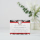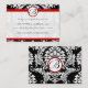 Black Damask On White Red Trim Save The Date shown on Linen Stationery - Black Damask On White with Red Trim Wedding Invitation -you choose paper style and color - as well as - font style and color. If you would like a glossy finish (glossy on front side only) order the basic, linen or metallic papers - for a matte finish order recycled, felt or speckled.