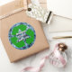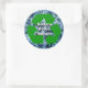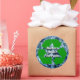 Sticky Reminder! Promote a "green" message on this round template sticker with a blue shredded, crinkled paper background. The text is centered within the green Mobius Loop recycle symbol. Keep this environmental message or fill in the template block with your words. Or click "Customize it" to select a font style, size and color you prefer. The entire design is customizable.