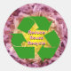 The color contrast highlights the text. Promote a "green" message on this round template sticker with a pink shredded, crinkled paper background. The text is centered within the Mobius Loop recycle symbol. Keep this environmental message or fill in the template block with your words. Or click "Customize it" to select a font style, size and color you prefer. The entire design is customizable.