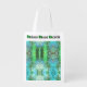 I own a lot of reusable grocery bags, but this one holds its box shape and simply stands up on its own even if there is nothing in it. Its stiffer than your regular reusable bag too, and the material is water resistant. I poured water on the exterior and it didn't penetrate inside to the other side. I'm buying a couple more. Wish I knew how durable these bags were or I would have purchased a few more with my initial order. I also like how it folds and buttons up when not in use, making it easy to put into a handbag or luggage. I haven't used this bag yet, as I purchased it for travel use, like when you're at the airport and need to small sturdy bag to place any airport purchases in, like food, souvenirs etc. I can tell you when you first see this bag, it looks very cheap, but after closer inspection of the material and the seams its a very sturdy reusable bag. I tested it out by putting some really heavy objects inside and I could not observe any stress to the bag at all. Another thing I like about it, is the fact the medium size that this is makes it easy to just carry it in your hand without the bottom of the bag scraping the ground, like most other bags do when you're short. That alone, deserves 5 stars. I just wish there were more colors to choose from! The PDX Airport Carpet printing looks just like the photo, and using this bag during travel might be a conversation piece when/if a native from Oregon happens to see it.