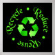 Reduce - Reuse - Recycle - black poster with green script lettering and recycling symbol.