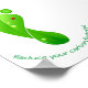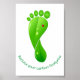 On this item you see a footprint made of leaves, together with ladybugs and drops of water with the text 'Reduce your carbon footprint'