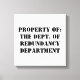 Property Of The Dept Of Redundancy Department message in a stamped stencil style text.