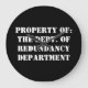 Property Of The Dept Of Redundancy Department message in a stamped stencil style text.