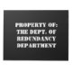 Property Of The Dept Of Redundancy Department message in a stamped stencil style text.