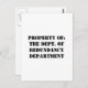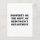 Property Of The Dept Of Redundancy Department message in a stamped stencil style text.