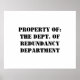 Property Of The Dept Of Redundancy Department message in a stamped stencil style text.