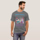 My 11 yo wore adult XL (5’7” 165#). The 8yo is small framed. She wore adult small and tied it in the back. Grandma wore adult large with long sleeve shirt underneath. Tall girl adult medium. Dark haired male adult large. Good quality dark Heather gray, Gildan brand shirt. -it was next up from basic choice and cost about $20 per shirt. Not too thick or thin. Washed and dried well, no major shrinkage. Not see-through. Can wear a bra under it fine. Screen print is just as shown and well done, front and back.