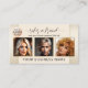 Referral business card featuring 3 of your own photos with your logo (optional) on a simple background. On the back is an optional and easy to customize QR code template (also optional to use). You can keep the photos for a hair and beauty salon if you like, or replace them. This referral card can be customized for any business.