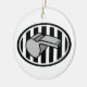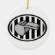 Lightweight, smooth, pure white ornament with nice sheen. Perfect size to be seen from across the room ... and to attract closer inspection! Price was great for ordering enough for the whole family! Clear, bold black design just as requested. Matches the order exactly. Just so nice!