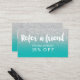 Refer a friend with this modern, stylish makeup referral card with modern hand lettering style brush typography in white on a faux silver glitter and teal robbin eg blue trendy and elegant background. If you need any customization, don't hesitate in contacting me