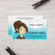 Referral or tell-a-friend business card with a cartoon lady recommending your business. Great for any business with predominantly women clients.