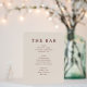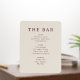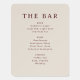 This elegant wedding menu card features a minimalist design with a soft beige background and maroon text, creating a refined and sophisticated look. The layout is clean and organized, with three sections for beer, wine, and spirits, each clearly separated by ample spacing. Classic serif typography adds a touch of formality, while the absence of decorative elements keeps the focus on the curated beverage selection. Perfect for couples seeking an understated yet stylish presentation for their special day.