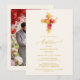 With an air of solemnity and warmth, this card accompanies the celebration of a Christian baptism with delicacy and significance. The gold-effect cross and floral composition create a harmonious image that enhances the emotion of the moment. The design is suitable for families celebrating baptisms across diverse Christian traditions, including Catholic, Evangelical, Protestant, and other Christian communities who wish to announce this special day with an elegant and meaningful card. The invitation allows customization of the baby’s name, baptism date, and ceremony details, always maintaining visual coherence and becoming a heartfelt keepsake that guests will treasure forever. It also includes a family photo on the back, making the card an even more cherished keepsake.