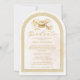 The combination of soft beige tones and the architectural arch shape conveys a sense of refined celebration, pride, and timeless academic achievement. The design maintains a minimalist yet distinguished aesthetic that allows the invitation text to stand out clearly while remaining surrounded by subtle decorative elements that provide balance and visual harmony.