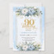 Refined light blue gold wreath 90th birthday invitation