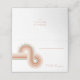 Retro 70's geometric lines have been given a facelift with a color-blocked background and contemporary color scheme, to create the pieces of this eye-catching wedding design set. The color palette ranges from burnt orange through shades of terra cotta and sage green to give this set a very trendy vibe. The wedding table place card shown here features the above plus a template to easily add your own names, wedding date and message (we've added 'love is all around' as an example). Search ID983 to see all the coordinating pieces in this set.