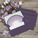 Retro 70's geometric lines have been given a facelift with a color-blocked background and contemporary color scheme, to create the pieces of this eye-catching wedding design set. The color palette ranges from soft lavender through shades of deep violet and steel blue to give this set a very trendy vibe. The coordinating envelope shown here features a geometric arch in the same striking gradient of colors for the interior, plus a template to easily add your own names and return address. Search ID983 to see all the coordinating pieces in this set.