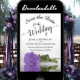 This wedding Save the Date card is romantic, elegant, classy, and beautiful. It features a photograph of a single long-stemmed lavender purple colored rose reflecting in a pool of water with waves and ripples. The text is a fancy script calligraphy on a white background. The back features a marbled purple pattern. Perfect way to let your friends and family know about your upcoming wedding.