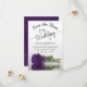 This wedding Save the Date card is romantic, elegant, classy, and beautiful. It features a photograph of a single long stemmed purple rose reflecting in a pool of water with waves and ripples. The text is a fancy script calligraphy on a white background. The back features a deep marbled purple pattern. Perfect way to let your friends and family know about your upcoming wedding.