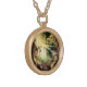 I chose gold plated so that the metal would not react with my skin oils and perspiration. But, I changed the necklace from the gold plated one to a sterling silver. My skin cells will tarnish the silver. But it will not look as bad if some portion of the gold plated necklace somehow became compromised. Zazzle did a find job turning the picture into a pendant for me. As you can see, the colors and the printing of the final product, match the preview. The picture I took is not very clear. But I am pleased with the product I received.