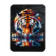 Majestic Tiger drinking water with cool reflection in the water. Ai art depicting a tiger.