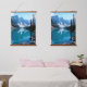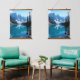 A harmonious wall art piece that captures the calm beauty of snow-capped mountains mirrored in a tranquil lake, framed by lush pine trees. Displayed in a cozy interior setting, the artwork radiates balance and peace, making it perfect for living rooms, reading corners, or meditation spaces. Its symmetrical composition and natural tones invite relaxation and elevate any modern or rustic décor.