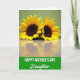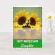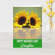 This card shows two large daisy-like flowers with golden-yellow petals leaning close together, as if sharing a quiet, affectionate moment ❤️. Their deep brown centers stand out against a soft green background, and the petals are detailed enough to feel gently layered and lifelike. A smooth, glossy surface beneath them catches a faint mirror reflection, slightly softened like a tender echo of the blooms. The lighting is natural and diffused, giving the scene a calm glow that suggests closeness and care without needing extra decoration. Along the bottom, a wide emerald-green band holds the message “HAPPY MOTHER’S DAY” in uppercase letters in a light color for strong contrast. Just below that, the word “Daughter” appears smaller in a flowing cursive style, also in a light tone, adding a softer, intimate touch 🌼. The composition is centered, with the two flowers above and their muted reflection directly below on the shiny surface.