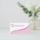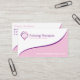 A reflexology business card with heart-shape and toes logo in pink and purple.