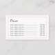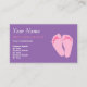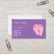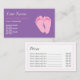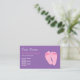 Business cards for reflexologists. The design features a pair of pink feet. The back of the card has space for the prices of up to six items to be entered.