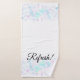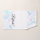 Soft pastel bubbles in blues, pinks and purples on a towel set. Refresh text can be personalized