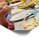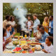 A high-quality graphic that brings the warmth and community of a summer cookout to any product. The design shows a diverse group of people gathered around a long picnic table.