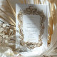 Step into a world of regal elegance with this Baroque Flourish Wedding Invitation Suite, designed for those who cherish classical beauty. The front and back of the invitation are encased in a sumptuous frame, drenched in hues of gold, cream, and a serene duo of sky and powder blues, which together evoke the tranquil beauty of a rococo painting. The frame itself is a masterpiece, with swirls and flourishes that reflect the grandeur of Baroque architecture and the ornate detail of period tapestries. Featuring a customizable monogram set within an aristocratic crest, this suite is a tribute to the time-honored traditions of love and matrimony, promising to enchant your guests with its timeless sophistication.