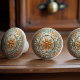 Transform your furniture with the exquisite "Regal Blossom Vintage Ceramic Knob." This stunning knob features an intricately designed pattern that blends elegance with a touch of vintage charm. The central floral motif, surrounded by ornate detailing, is beautifully rendered in a luxurious palette of soft turquoise and shimmering gold. Although printed, the design's meticulous craftsmanship gives the illusion of real gold embossing, adding a sophisticated and timeless look to any piece. Perfect for cabinets, drawers, or doors, this ceramic knob will elevate your home decor with its unique artistry and refined aesthetics.