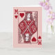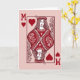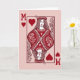 This design shows a mirrored playing-card style portrait of a regal woman, her face and crown reflected top-to-bottom as if two figures are quietly meeting in the middle. She wears a small crown and a richly patterned outfit, where curling ribbon-like shapes and tiny daisy blooms suggest a gentle closeness, like an affectionate glance shared across the symmetry ❤️. The background is a soft blush pink that keeps the central figure feeling calm and romantic without being fussy. Near the corners, a capital “M” appears alongside a heart symbol, laid out like card markings and kept easy to spot. The main colors are deep crimson and pale pink with small touches of creamy white that brighten the crown, facial details, and parts of the garment. The clothing is filled with repeating motifs—coiled, serpentine curves, little heart emblems, and daisy petals 🌼—all arranged to guide your eye back toward the center line. The overall layout feels balanced and modern, with crisp edges and careful spacing around the figure. The “M” and heart icons sit against the pink field, while the figure’s crimson patterns form the strongest contrast in the middle.