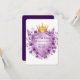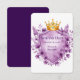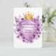 This exquisite wedding invitation template features a royal golden crown adorned with amethyst jewels, nestled above a heraldic shield framed in gold. Surrounding the design are lush lavender and violet peonies, creating a luxurious, vintage floral motif. Perfect for romantic, royal-themed weddings or elegant celebrations with a touch of nobility and floral charm. The blank shield provides space for custom names, dates, or messages.