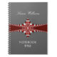 Custom design Spiral bound Notebook in regal red ribbon decorative design on satin silver - unique, stylish & elegant for all ages and subjects. Personalize with name / book title and any other details (delete which ever you don't need)