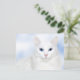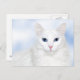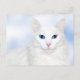 Long haired, possibly Turkish Angora, blue eyed white cat photo postcard