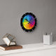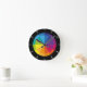 Dezent, und doch abstrakt. Regenbogen mit schwarz und weiß kombiniert. Wanduhr, ganz unauffällig.