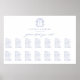 Regency Blue Baroque Crest monogram, 14 table wedding seating chart. Vintage inspired baroque crest in Regency Blue. Features, elegant and classy blue typography design style mix of script and bold type.