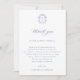 Regency Blue Crest Wedding Reception Table Thank You Card