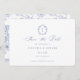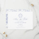 Regency Blue Monogram Crest, wedding save the date card. Vintage inspired crest in Baroque Style with Chinoiserie Garden Floral Pattern Backing.
