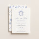 Regency Blue Monogram Crest, wedding save the date card. Vintage inspired crest in Baroque Style with Chinoiserie Garden Floral Pattern Backing.