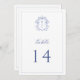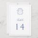 Regency Blue Monogram Crest Wedding Table Number