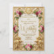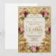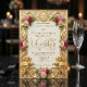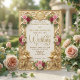 Transport your guests to a royal fairytale with this vintage-inspired design, featuring soft blush florals and a luxurious faux gold filigree frame.