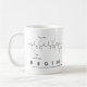 Regina spelled out in amino acids as R E G I N A (Arginine Glutamic acid Glycine Isoleucine Asparagine Alanine) on a mug for the scientist in you.