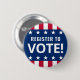 Pinback button badge featuring the text "register to vote" and stars and stripes borders.