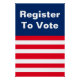 At the top, white display text says 'Register to Vote' on a blue background. At the bottom, there are red and white stripes. You can edit the text if desired.