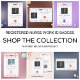 Simple and modern registered nurse healthcare logo QR badge with a pattern of medical instrumental. Add your photo, logo and link. Illustrated and designed by Patricia Alvarez.