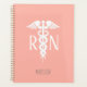 Stay organized with this Registered Nurse Medical Coral Pink Personalized Planner. It is designed with a pink background on the front and back. The front has a white caduceus symbol and "RN" on the center. Name is in light grey skinny lettering across the lower front. CLICK PERSONALIZE TEMPLATE OPTION AND ENTER NAME.